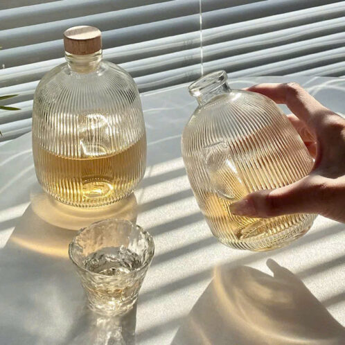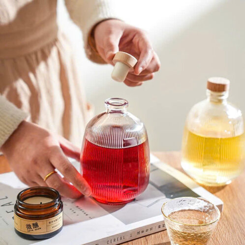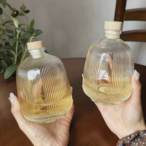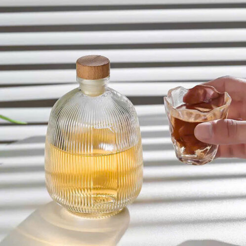 Chai thủy tinh bầu sọc nắp gỗ dung tích 375ml và 500ml