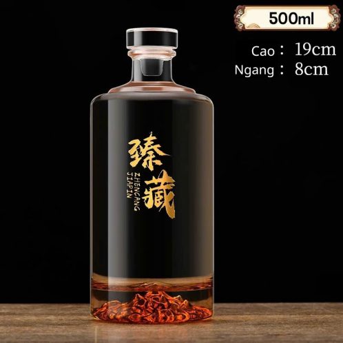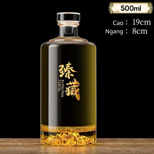 Chai thủy tinh tròn trơn đáy núi 500ml